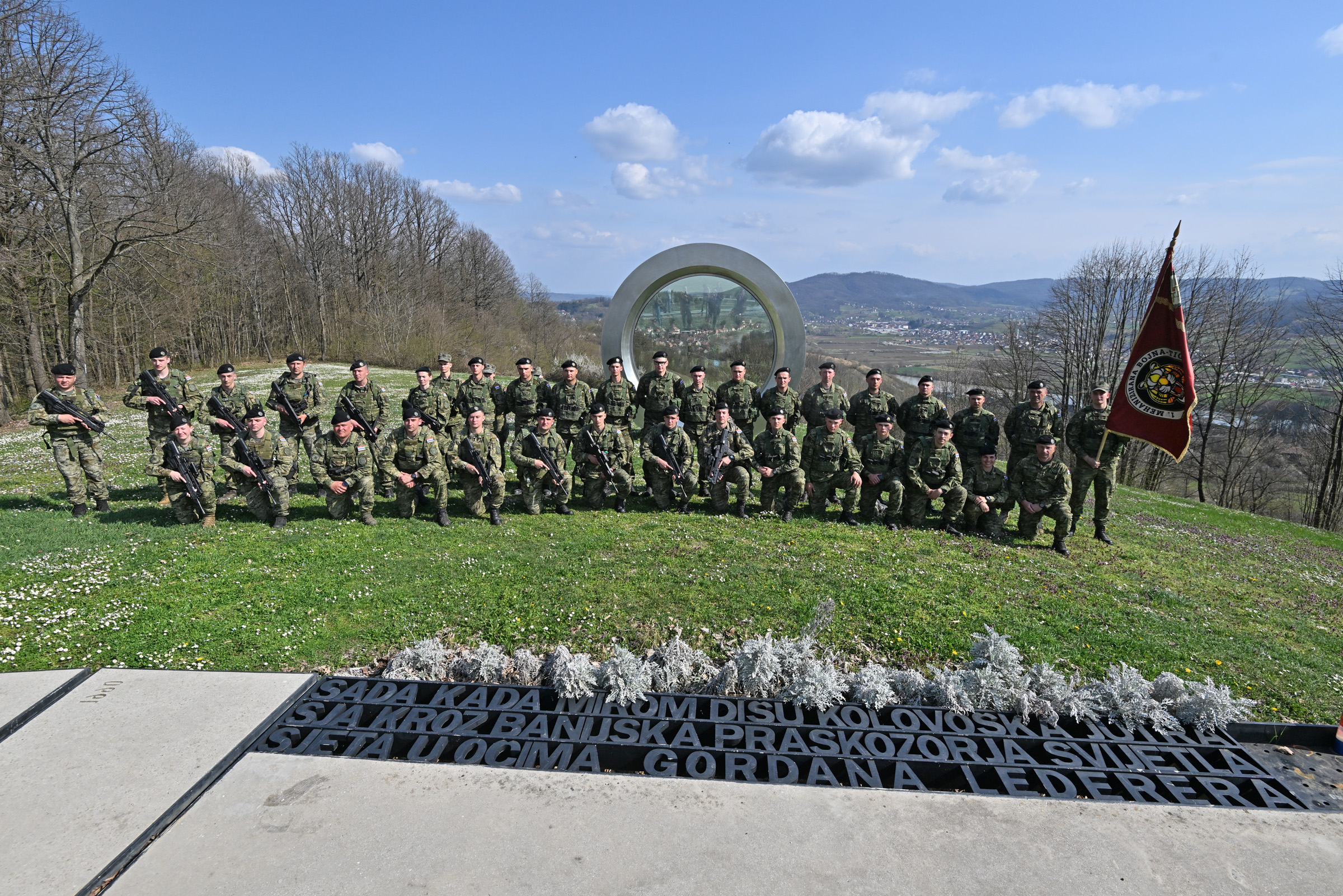 Četrdeset pripadnika Tigrova prvog dana prehodalo je 28 kilometara od Petrinje do Sunje, a drugog dana pridružili smo im se na hodnji dugoj 20 kilometara od Sunje do Hrvatske Kostajnice. Prije polaska iz Sunje zapaljena je svijeća na mjesnom groblju kod križa pored kojeg su ploče s ispisanim imenima poginulih i nestalih branitelja Sunje. “Putem smo se zaustavili kod svih važnih spomenika žrtvama Domovinskog rata, gdje su nas pripadnici braniteljskih udruga i tadašnjih ratnih brigada dočekali i objasnili cijeli ratni put svoje brigade i što se događalo na svakom području“, kazao nam je časnički namjesnik Tomislav Gorec, prvi dočasnik 1. mehanizirane bojne Tigrovi. U punoj opremi, s naprtnjačom na leđima teškom petnaestak kilograma prolazili su kroz mjesta gdje su se tijekom Domovinskog rata odvile teške borbe na Banovini. Stojimo pred spomenikom u Donjem Hrastovcu podignutom neposredno do masovne grobnice.