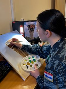 Kad se susretnete s kadetkinjom Hrvatskog vojnog učilišta “Dr. Franjo Tuđman“ Melani Panižić, odmah postaje jasno da pred vama stoji osoba iznimno smirene energije, ali snažne unutarnje usmjerenosti. Spoj dvaju naizgled udaljenih svjetova vojnog i umjetničkog, u njezinu se osobnom i profesionalnom putu nadopunjuje na posve prirodan način. Danas je kadetkinja studija Vojnog pomorstva, na petoj godini, a put do vojne odore započeo je u njezinu rodnom kraju, u Lipovljanima, u zapadnoj Slavoniji, gdje je odrastala okružena jednostavnošću svakodnevice i trajnom blizinom stvaralaštva. “Oduvijek sam voljela umjetnost“, kaže, “ali paralelno s tim rasla je želja da radim nešto izazovno i smisleno. Vojni poziv pružio mi je osjećaj svrhe i priliku rasti kroz disciplinu, odgovornost i timski rad. Osjetila sam da se u pomorskoj profesiji mogu ostvariti na drugačiji, ali jednako snažan način.“ Nakon Škole primijenjene umjetnosti i dizajna, želja za dinamikom, odgovornošću i služenjem zajednici usmjerila ju je prema vojnom pozivu. U pomorstvu je prepoznala prostor u kojem će se moći ostvariti jednako snažno kao i na platnu, ali na drukčiji, strukturiraniji način. Svoj umjetnički razvoj opisuje kao trajno učenje strpljenju, promišljanju i disciplini. Te vrijednosti, kako kaže, u vojnom okruženju dobivaju novu težinu. Pažnja prema nijansama, sposobnost uočavanja suptilnih detalja i kreativno razmišljanje pokazali su se od velike koristi u zahtjevnim situacijama kadetske obuke. “Za mene kreativnost znači slobodu izražavanja, ali i sposobnost sagledavanja problema iz više perspektiva.