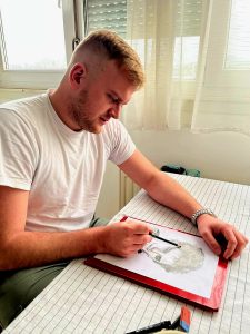 Počeci crtanja sežu u rano djetinjstvo. Interes se, kaže, pojavio još u prvom razredu osnovne škole, na satu likovne kulture, poput igre koja je s vremenom postajala sve ozbiljnija. Godinama kasnije primijetio je da ga osobito privlače portreti. Najčešće radi olovkom i ugljenom, a talent, smatra, nije dar koji se podrazumijeva, nego vještina koja se razvija isključivo radom i vježbom. Iako se njegov profesionalni put odvija u posve drukčijem smjeru, umjetnost ga nikad nije napustila. Kad ga pitamo što ga je zadržalo uz crtanje, odgovor je jednostavan, voli to što radi. Smatra da čovjek, bez obzira na poziv, mora imati nešto svoje, hobi koji ga prati i održava unutarnju ravnotežu. Govoreći o vlastitom umjetničkom izrazu, ne koristi velike riječi. Svoj stil opisuje kao jednostavan i realističan. Teži tome da portret što vjernije prikaže osobu, ali i da svaki rad nosi priču. Upravo ga to privlači realizmu, svijest o uloženom trudu, strpljenju i disciplini. Suvremena umjetnost, priznaje, nije mu bliska. U njegovim crtežima često je prisutna snažna osobna dimenzija. Najčešće crta ljude koji su njemu važni ili koji imaju posebno mjesto u životima drugih. Najveći poticaj pritom su reakcije onih kojima je crtež namijenjen. U tim trenucima, kaže, zna da je učinio nešto vrijedno. Tada crtež prestaje biti samo slika i postaje poruka.
