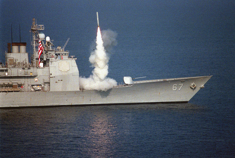 USS Shiloh (CG 67) launches a Tomahawk cruise missile against Iraq.