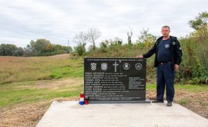 Đuro Kovačević stoji u blizini lokacije minskog polja na kojem je nastradao, uz spomenik poginulima iz Štafete smrti i poslije poginulim te preminulim braniteljima Bogdanovaca (Foto: osobna arhiva)