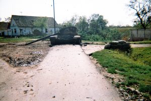 Još jedan ratni prizor iz Bogdanovaca – pogled na put prema Marincima gdje su 2. listopada 1991. uništena dva agresorska transportera (Foto: Damir Radnić)