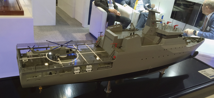 Rear view of a scale model of an OPV-1800 vessel made by the Dut